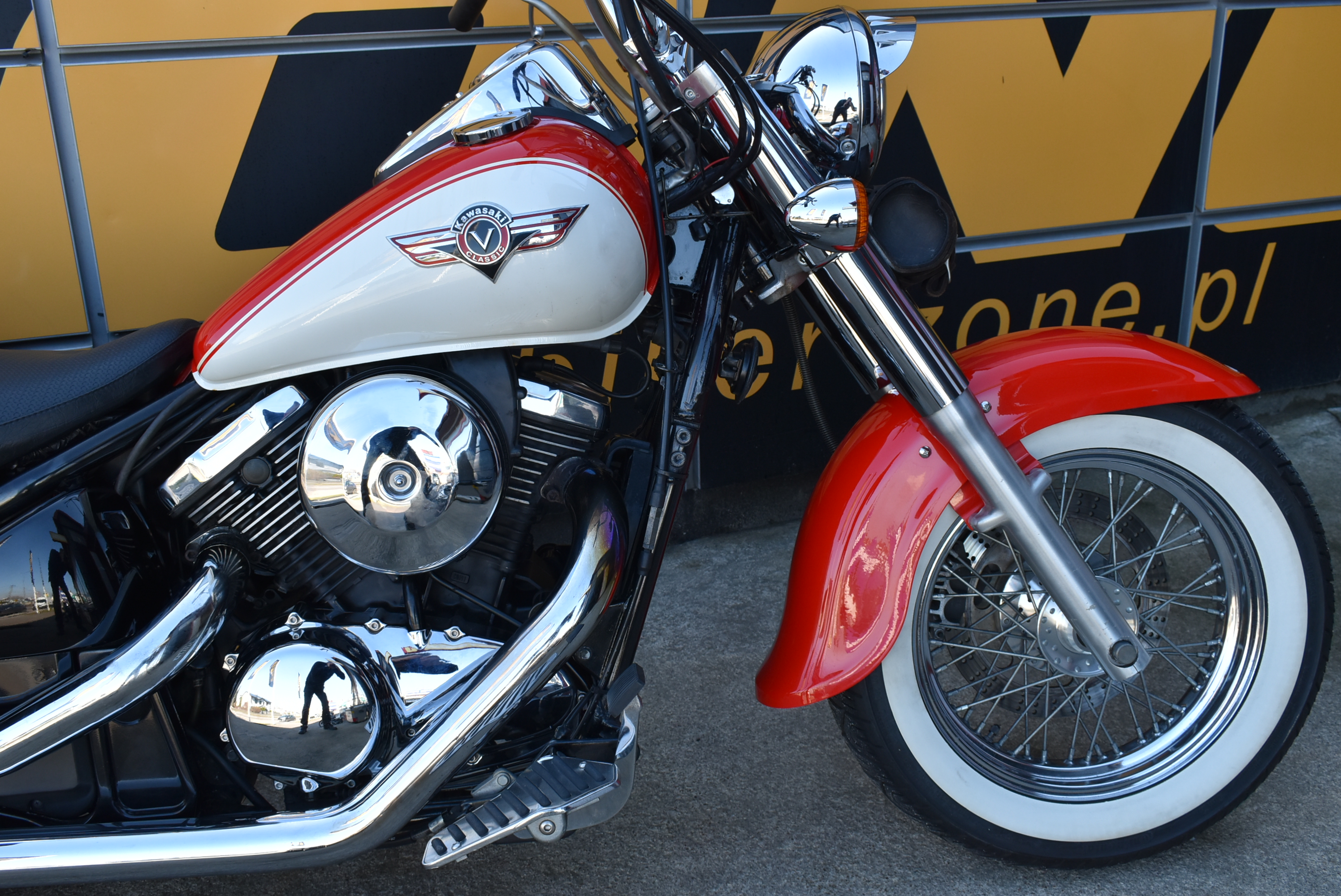 PIĘKNIE PRZEROBIONY, WYSOKA KIEROWNICA, OPONY Z BIAŁYM PASEM, OPRACIE PASAŻERA, SZTYWNE KUFRY BOCZNE LAKIEROWANE